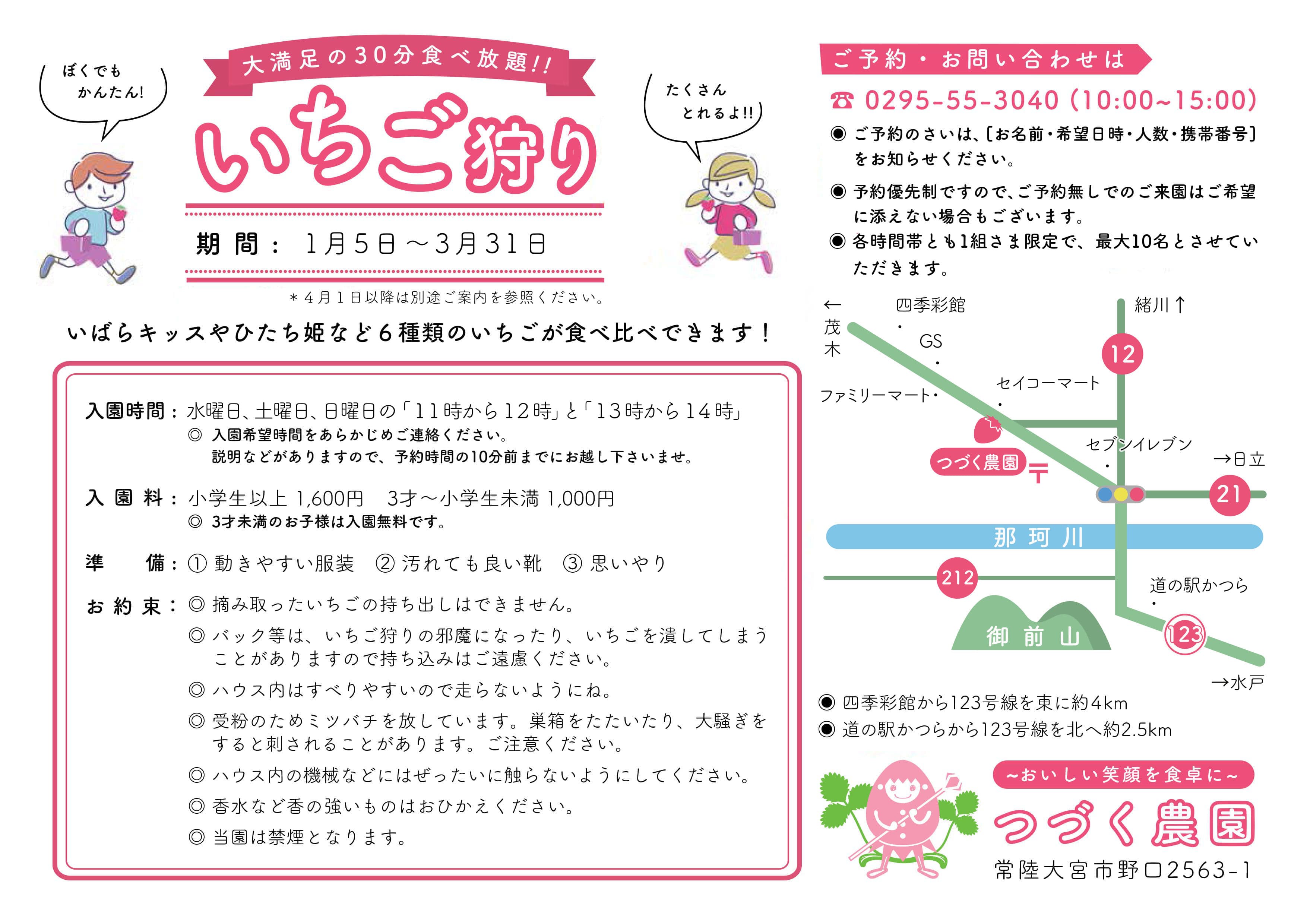 ※いちご狩りは予約優先制となります。